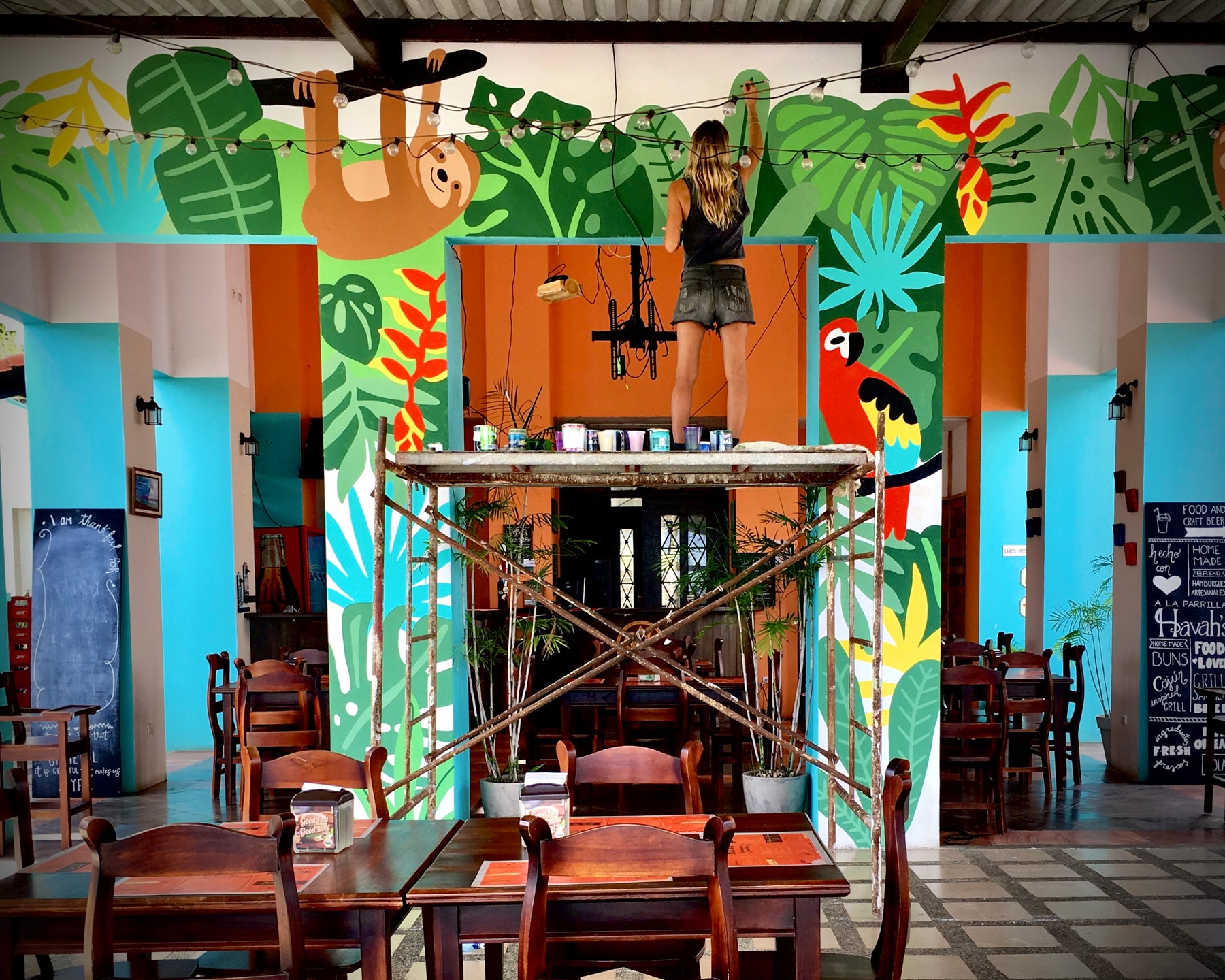 Inspired by a Mural I painted of a jungle scene in Costa Rica! This little parrot first appeared in a Mural in 2018, and I decided to bring him back in a bright new palette! This colorful painting will bring a statement-worthy, unique addition to a coastal/jungle living space.