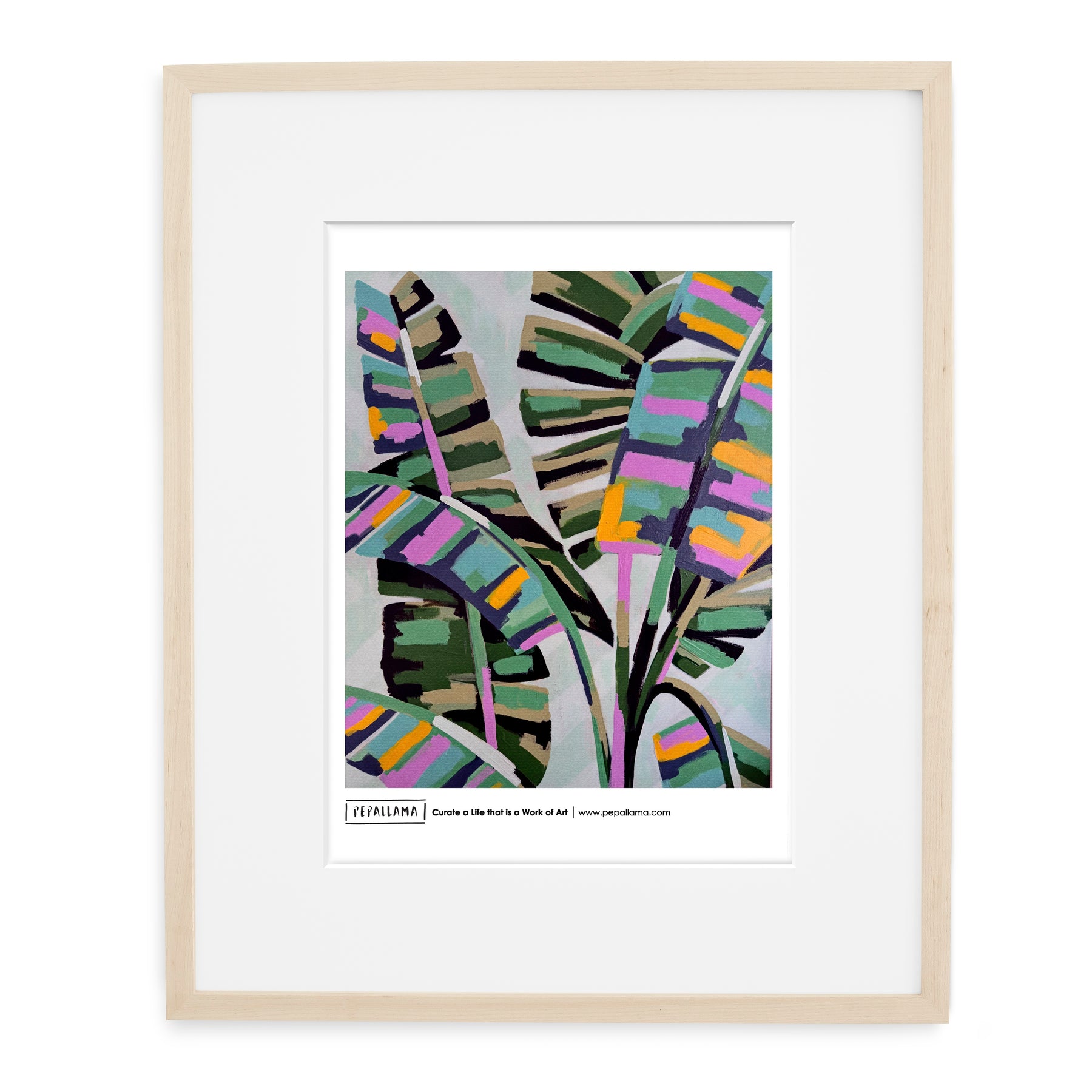 This original @pepallama tropical banana palm art print was created using an original painting (created on location in my studio in Costa Rica) which is a common theme in my international Mural projects! It's painted in an abstract style with bright colours and has a subtle textured overlay.